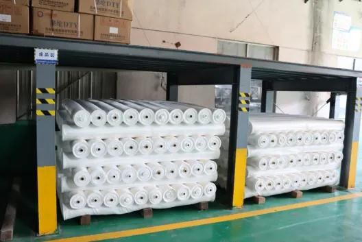 走進(jìn)位于吳江區(qū)桃源鎮(zhèn)的吳江雯建織造有限公司(以下簡稱雯建織造),2000多平方米綠色環(huán)氧地坪從廠區(qū)門口一路向廠內(nèi)延伸。廠區(qū)內(nèi)場地兩側(cè),擺放著雙層鋼結(jié)構(gòu)置物架,空盤區(qū)、原料區(qū)、白坯區(qū)、成品區(qū)等分類清晰,物品整齊堆放。危廢貯存間、COD在線監(jiān)測室、污水收集池、雨水蓄水池、洗綜處、廢固料區(qū)等各功能分區(qū)有序分布。