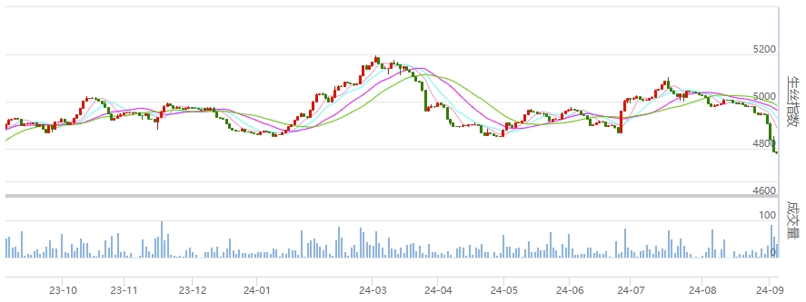 20/22D商檢4A級生絲:在三根大陰線后,今日(周三)生絲盤面有所止跌,活躍月份240925、250325和250925合約今日略下跌后有所反彈,倉量有所下降,今日均略收紅。