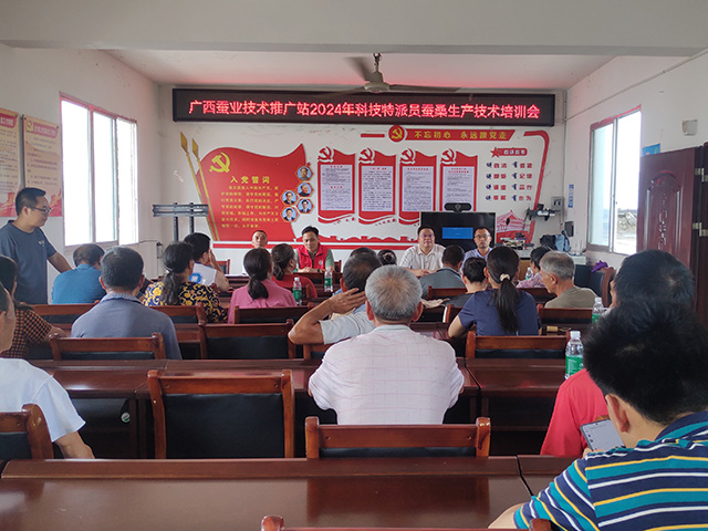 培訓(xùn)班上,特派員針對(duì)當(dāng)?shù)氐那闆r,就桑樹豐產(chǎn)高效栽培技術(shù)和家蠶高產(chǎn)高效飼養(yǎng)技術(shù)進(jìn)行詳細(xì)講解,介紹了廣西蠶桑產(chǎn)業(yè)的發(fā)展情況和未來的發(fā)展趨勢(shì),通過培訓(xùn)讓蠶農(nóng)更加扎實(shí)地掌握種桑養(yǎng)蠶關(guān)鍵技術(shù),在種養(yǎng)過程中做到心中有底,不斷增強(qiáng)信心,實(shí)現(xiàn)增產(chǎn)增收,此次培訓(xùn)班共培訓(xùn)60人次。