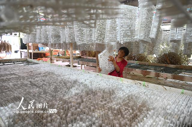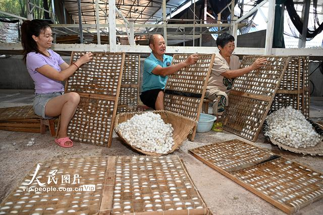 2024年9月5日,四川省內(nèi)江市東興區(qū)雙橋鎮(zhèn)雙流村,蠶農(nóng)在收獲秋繭。
