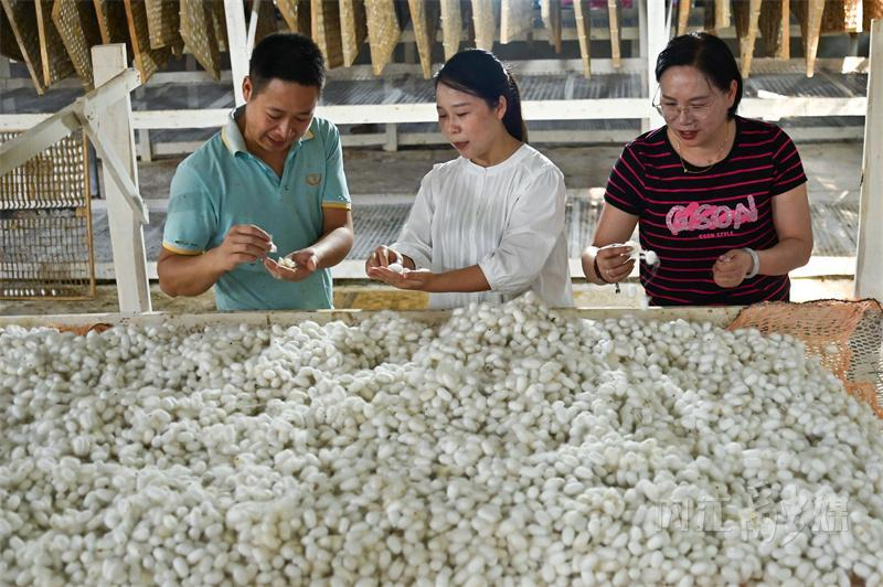 據(jù)了解,內(nèi)江市東興區(qū)有著悠久的桑蠶養(yǎng)殖傳統(tǒng),是“全國優(yōu)質(zhì)蠶繭基地縣”。依托當?shù)刭Y源優(yōu)勢和環(huán)境特點,東興區(qū)把發(fā)展蠶桑產(chǎn)業(yè)與推動鄉(xiāng)村振興相結(jié)合,通過“龍頭企業(yè)+合作社+基地+農(nóng)戶”的模式,大力發(fā)展蠶桑產(chǎn)業(yè),帶動群眾栽桑養(yǎng)蠶增收致富。