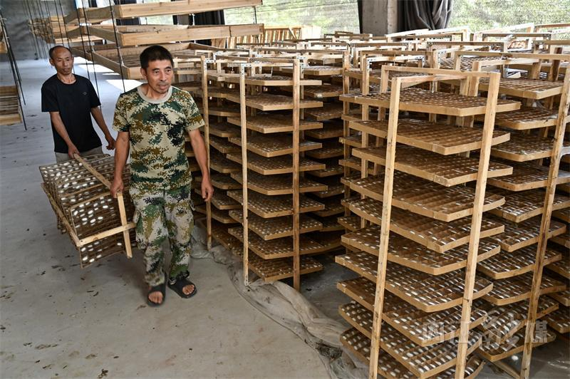 9月5日,內(nèi)江市東興區(qū)順河鎮(zhèn)冷家村,東興區(qū)呂林江蠶桑養(yǎng)殖家庭農(nóng)場,蠶農(nóng)正在搬運蠶繭