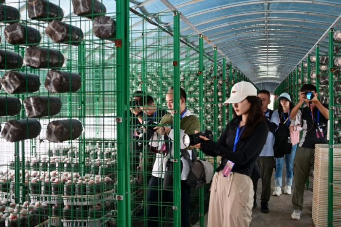 中省市主流媒體“走進(jìn)幸福寧南 見(jiàn)證時(shí)代新貌”新聞攝影采風(fēng)活動(dòng)走進(jìn)寧南縣松新鎮(zhèn)碧窩現(xiàn)代農(nóng)業(yè)園區(qū)食用菌基地