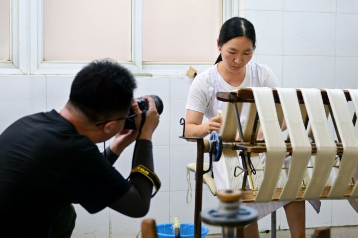 采風(fēng)團(tuán)一行走進(jìn)寧南縣繭絲綢工業(yè)集中發(fā)展區(qū)南絲路集團(tuán)生產(chǎn)車(chē)間拍攝采訪(fǎng)