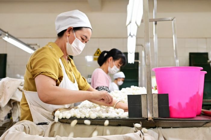寧南縣繭絲綢工業(yè)集中發(fā)展區(qū)南絲路集團(tuán)生產(chǎn)車(chē)間內(nèi)工人正在忙碌