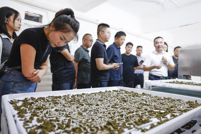 科技賦能智慧育蠶、科學(xué)養(yǎng)蠶,既解放了人力,更大大提升了養(yǎng)殖效能。為此,板橋鎮(zhèn)創(chuàng)新推出“統(tǒng)一蠶種,小蠶共育,大蠶分養(yǎng)”模式,帶動周邊3個(gè)鄉(xiāng)鎮(zhèn)27個(gè)村,幫助農(nóng)戶育小蠶,指導(dǎo)農(nóng)戶養(yǎng)大蠶,蠶農(nóng)養(yǎng)殖周期也從28天縮短至15天。當(dāng)?shù)剞r(nóng)戶也紛紛重操舊業(yè),經(jīng)統(tǒng)一培訓(xùn)、崗位練兵,從“經(jīng)驗(yàn)主義”養(yǎng)殖戶升級為“職業(yè)農(nóng)民”。