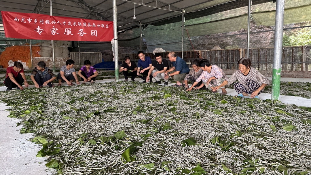 蠶桑產(chǎn)業(yè)人才分聯(lián)盟專(zhuān)家服務(wù)團(tuán)為農(nóng)戶(hù)作技術(shù)指導(dǎo)