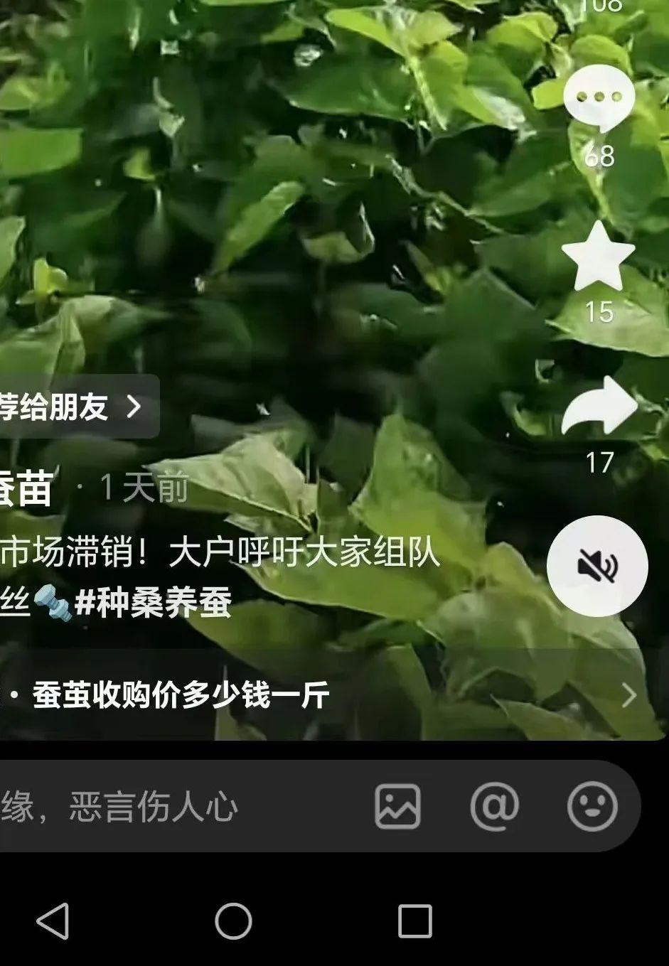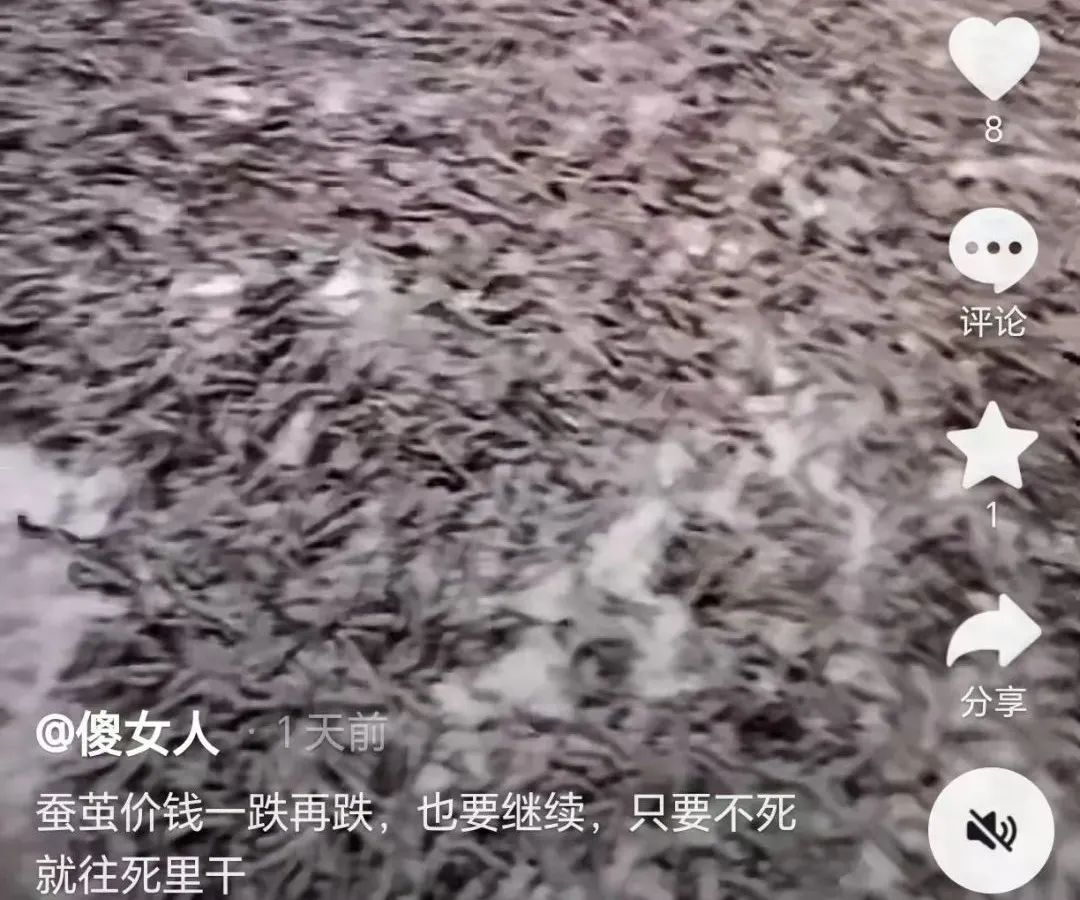 蠶農(nóng)怎么看?選幾則某音平臺(tái)上特別是廣西有些蠶農(nóng)的抖音號(hào)這兩天所發(fā)內(nèi)容的截屏。關(guān)注后期全國(guó)天氣進(jìn)展以及農(nóng)民的積極性程度。