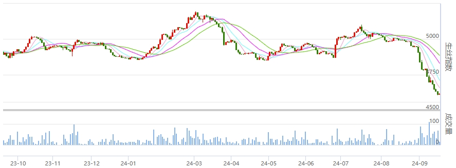 今日(2024年09月18日,周三)中國繭絲綢交易市場生絲電子指數(shù)上漲0.07%報收于4614.71點。B絲2022D(商檢4A級生絲):240925合約上漲0.03萬元報收于46.68萬元;250325合約上漲0.18萬元報收于46.05萬元;250925合約上漲0.21萬元報收于45.93萬元。