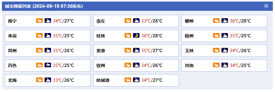 廣西氣象臺(tái)19日05時(shí)發(fā)布預(yù)報(bào):