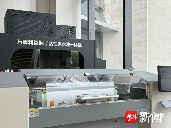 這臺占地不到50平方米的機器,擁有著相當于5000平方米生產線的能力。它就是萬事利自主研發(fā)的活性免水洗印染一體機,能夠實現1米起訂,最快2小時拿到成品。此外,傳統的紡織印染過程中,污水排放一直是一個難以解決的問題。而這臺一體機,不僅解決了這一世界難題,還實現了體積小、速度快、無污染的目標,成為助推紡織行業(yè)高質量發(fā)展的新質生產力。這項技術的應用,讓印染廠可以開設在門店或辦公室內,打印絲巾就像打印紙一樣簡單快捷。這不僅提高了生產效率,還極大地降低了環(huán)境污染,為紡織行業(yè)的可持續(xù)發(fā)展提供了新的思路。