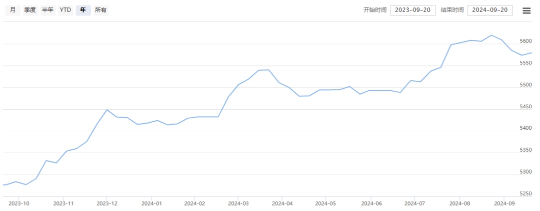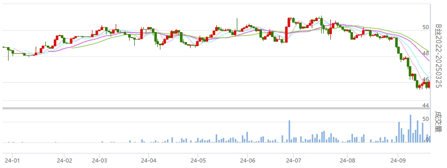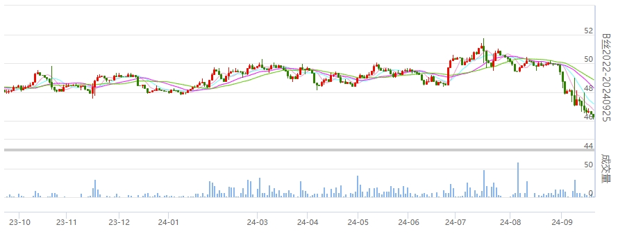 今日(2024年09月20日,周五)中國(guó)繭絲綢交易市場(chǎng)生絲電子指數(shù)下跌0.23%報(bào)收于4578.83點(diǎn),本周生絲指數(shù)下跌0.71%。B絲2022D(商檢4A級(jí)生絲):240925合約下跌0.18萬(wàn)元報(bào)收于46.32萬(wàn)元;250325合約上漲0.39萬(wàn)元報(bào)收于46.02萬(wàn)元;250925合約上漲0.15萬(wàn)元報(bào)收于45.63萬(wàn)元。