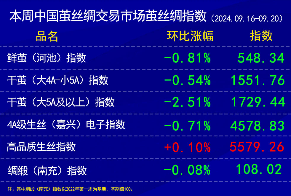 本周中國(guó)繭絲綢交易市場(chǎng)繭絲綢指數(shù)