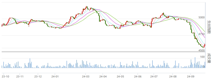 國家宏觀調(diào)控政策的出臺為各大類資產(chǎn)注入極大動力,央行多種政策工具齊出使得整體大宗商品市場情緒提升。受政策面提振,多數(shù)大宗商品市場近日也有所上漲,生絲價格在近期的大幅大跌后也同樣有連續(xù)反彈收紅。