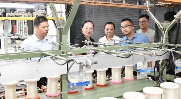 考察組一行來到忻城繭絲綢產(chǎn)業(yè)園實地調(diào)研,認真聽取當?shù)赜嘘P(guān)負責人介紹產(chǎn)業(yè)規(guī)模、紡織技術(shù),了解公司生產(chǎn)流程、工藝、生產(chǎn)設(shè)備等,進一步認識忻城繭絲綢全產(chǎn)業(yè)鏈發(fā)展情況。隨后,雙方就進一步優(yōu)化營商環(huán)境工作進行交流探討。