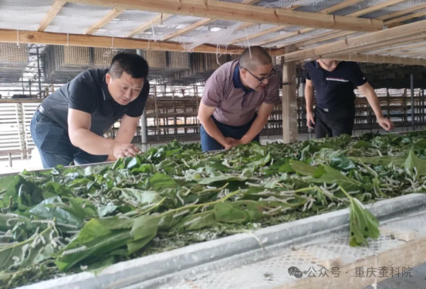 9月23—25日,重慶市蠶科院與黔江區(qū)蠶業(yè)管理總站相關(guān)專家組成蠶桑專家團(tuán)隊(duì),深入黔江區(qū)金溪鎮(zhèn)長春村、岔河村、太極鎮(zhèn)太河村、蓬東鄉(xiāng)麻柳村指導(dǎo)蠶桑生產(chǎn)。專家團(tuán)隊(duì)此行,一方面是給蠶農(nóng)鼓氣加勁,增加蠶農(nóng)的養(yǎng)好晚秋蠶的信心和決心;另一方面是給蠶農(nóng)傳授技術(shù),針對(duì)今年極端高溫干旱情況指導(dǎo)蠶農(nóng)對(duì)癥施策。專家們就目前開展桑園抗旱、飼育中合理補(bǔ)濕,特別是對(duì)采葉時(shí)間選擇和桑葉保鮮等關(guān)鍵技術(shù)進(jìn)行技術(shù)指導(dǎo),讓蠶農(nóng)抓好養(yǎng)蠶關(guān)鍵環(huán)節(jié),保證晚秋蠶正常生長發(fā)育,確保蠶繭產(chǎn)量和質(zhì)量,實(shí)現(xiàn)蠶農(nóng)增收。