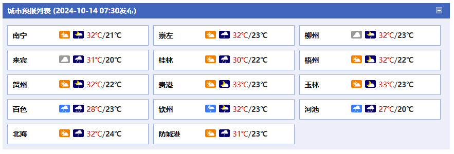廣西氣象臺(tái)14日05時(shí)發(fā)布預(yù)報(bào):