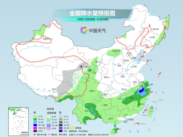 今天(10月15日),我國(guó)較強(qiáng)降雨主要出現(xiàn)在江南、華南等地部分地區(qū)。明天起,中東部地區(qū)將現(xiàn)大范圍降水過(guò)程,部分地區(qū)雨量同期少見,公眾請(qǐng)注意關(guān)注臨近預(yù)報(bào),防范次生災(zāi)害的發(fā)生。氣溫方面,今天,冷空氣繼續(xù)影響東北等地,18日起還將有強(qiáng)冷空氣影響中東部地區(qū),帶來(lái)明顯降溫。