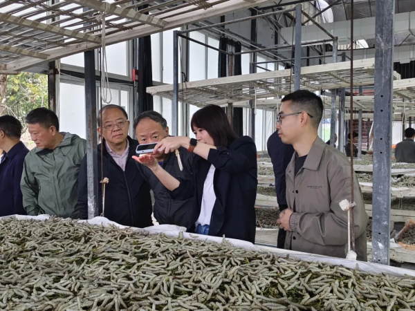 調(diào)研組一行先后前往了天虹蠶工場(chǎng)、“千鶴絲語(yǔ)”蠶桑文化展示中心等地。在調(diào)研過(guò)程中,薛憶向調(diào)研組詳細(xì)介紹了天虹絲綢在蠶桑產(chǎn)業(yè)方面的發(fā)展歷程、經(jīng)營(yíng)現(xiàn)狀以及一些未來(lái)規(guī)劃。薛憶表示,天虹絲綢作為一家專注于蠶桑產(chǎn)業(yè)的企業(yè),一直致力于培育壯大農(nóng)村特色優(yōu)勢(shì)產(chǎn)業(yè)。通過(guò)不斷創(chuàng)新技術(shù)、優(yōu)化產(chǎn)品質(zhì)量、拓展市場(chǎng)渠道,天虹絲綢在蠶桑產(chǎn)業(yè)領(lǐng)域取得了顯著的成績(jī)。目前,公司已形成了從栽桑養(yǎng)蠶、蠶繭收烘、生絲及絲制品生產(chǎn)、銷售、出口的完整產(chǎn)業(yè)鏈,產(chǎn)品遠(yuǎn)銷海內(nèi)外。