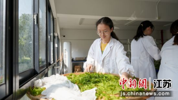 在實(shí)驗(yàn)室里,聞燕老師一邊教授同學(xué)們清洗、晾干等環(huán)節(jié)的操作規(guī)范,一邊介紹桑葉茶的相關(guān)知識(shí)。此次課程所用桑茶葉,全部采摘于學(xué)校桑園基地。