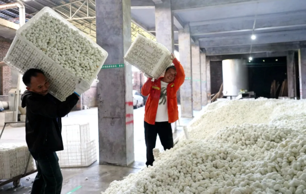 金秋十月,四川省高縣今年晚秋蠶繭迎來豐收,縣內(nèi)各繭站收購工作正如火如荼地進(jìn)行,蠶農(nóng)們忙碌著摘繭、賣繭,處處洋溢著豐收的喜悅。