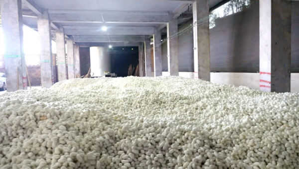 一筐筐雪白的蠶繭源源不斷地送往附近的繭站銷售。一大早,嘉樂鎮(zhèn)蠶繭站門前就已人聲鼎沸、熱鬧非凡,滿載蠶繭的農(nóng)用車排起了長龍,蠶農(nóng)們有說有笑地討論著這一季的收成。站內(nèi),工作人員忙碌著對鮮繭進(jìn)行評級、定價(jià)、稱重、結(jié)算,現(xiàn)場一派忙碌,收購來的蠶繭堆積成了一座座“小山”。