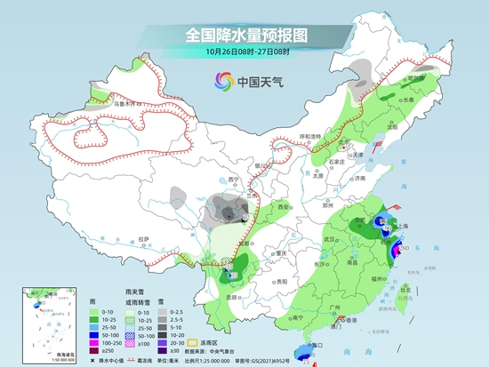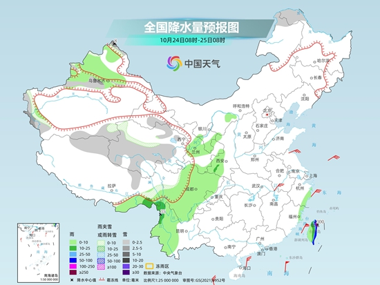 隨著冷空氣南下,昨天我國降水范圍縮減,雨雪主要集中在東北、西南一帶。臺風“潭美”影響逐漸顯現(xiàn),昨天8時至今天6時浙江、福建、廣東中部、臺灣等地的沿海地區(qū)及東沙群島出現(xiàn)8級以上陣風。