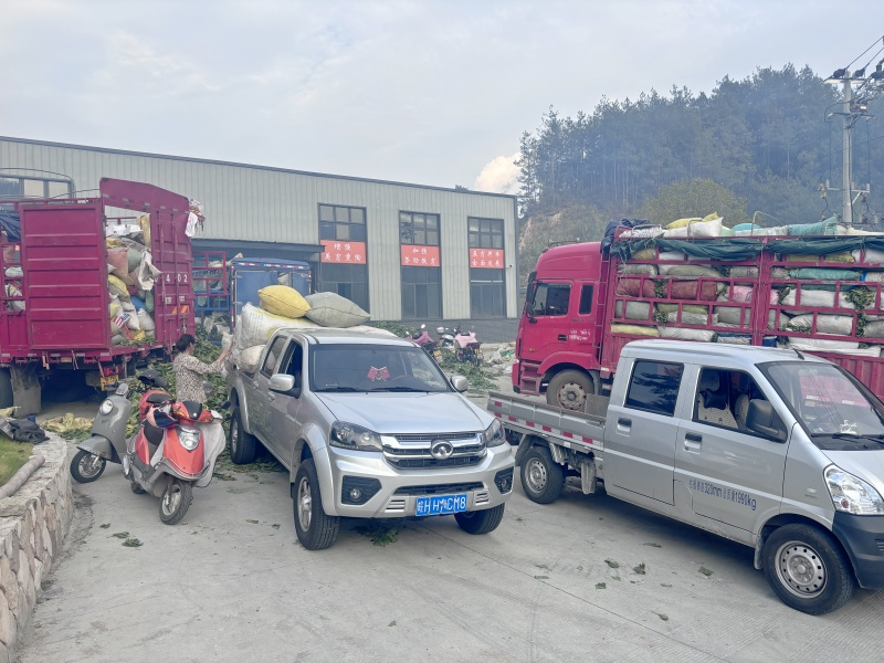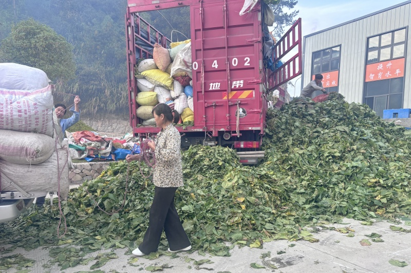 王春霞大嬸滿面笑容地跟我們介紹:“養(yǎng)蠶季過去了,緣豐公司還能收購我們樹上剩的最后一批葉子,這真是件大好事!現(xiàn)在我們每天都有活兒干,趕著桑葉老之前摘下來賣,一斤能賣到6毛錢,一天賣桑葉能賣200多元,天氣好的時候甚至能賣到500多元?!睋?jù)悉,往年養(yǎng)蠶季過了,再加上天冷霜打,最后樹上的桑葉就只能自然脫落,現(xiàn)在有公司收購,群眾種桑葉也實現(xiàn)了“多掙一筆錢”。周邊村落的村民得知消息后,也紛紛加入送桑葉的行列中,再遠(yuǎn)鄉(xiāng)鎮(zhèn)的居民也不甘示弱,用貨車裝滿一起送到這里。50公里外的白帽鎮(zhèn)村民陳大伯興奮地說:“我一天能送兩車桑葉過來,大約有1500多斤,還幫忙把附近鄰居家的一起帶過來賣。”