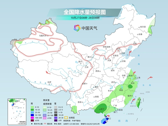 具體來看,今天新疆阿勒泰山區(qū)和南疆南部山區(qū)、內(nèi)蒙古中部、西藏東北部、青海東部和南部、甘肅祁連山山區(qū)、川西高原北部等地部分地區(qū)有小到中雪或雨夾雪,其中,內(nèi)蒙古中部、青海東南部等地局部地區(qū)有大雪。內(nèi)蒙古中部、西藏東南部、四川西南部、江蘇東南部、上海、浙江東部、福建東北部、臺(tái)灣島東部、西沙群島、中沙群島等地部分地區(qū)有中到大雨,其中,浙江沿海地區(qū)、福建東北部、臺(tái)灣島東部、西沙群島、中沙群島等地部分地區(qū)有暴雨或大暴雨,局地特大暴雨。