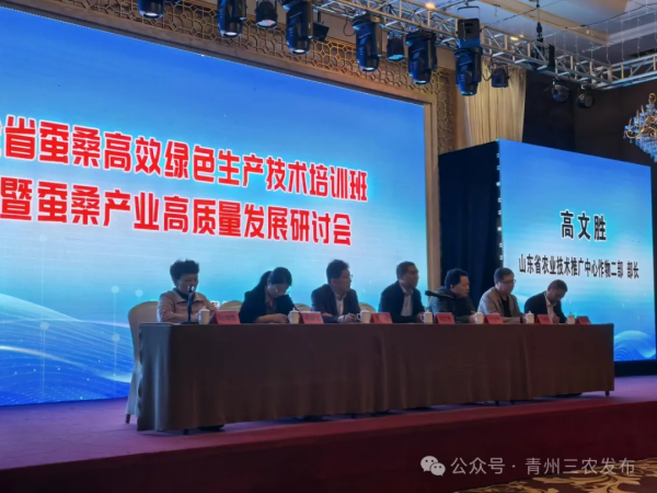 10月24-25日,2024年全省蠶桑高效綠色生產(chǎn)技術(shù)培訓(xùn)班暨蠶桑產(chǎn)業(yè)高質(zhì)量發(fā)展研討會在青州市成功舉辦。來自國家、省蠶桑產(chǎn)業(yè)技術(shù)體系專家,全省各市、縣(市、區(qū))蠶桑生產(chǎn)管理及技術(shù)推廣單位(部門)負(fù)責(zé)人、技術(shù)人員,骨干企業(yè)、合作社、家庭農(nóng)場負(fù)責(zé)人,以及有關(guān)專家等共計60余人參會。山東省農(nóng)業(yè)技術(shù)推廣中心作物二部部長高文勝、省農(nóng)業(yè)技術(shù)推廣中心作物二部茶葉蠶??瓶崎L趙瑞雪、濰坊市農(nóng)業(yè)技術(shù)推廣中心副主任劉建生、濰坊市農(nóng)業(yè)農(nóng)村局果茶科科長王愛國等來青出席會議。