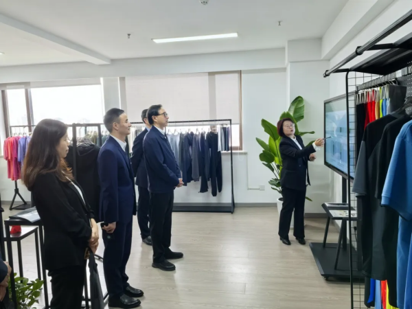 周勇首先參觀了位于省紡織工業(yè)協(xié)會(huì)的省紡織研究所南京研創(chuàng)中心,聽(tīng)取了省紡織研究所在高端服裝設(shè)計(jì)、紡織面料研發(fā)、海外市場(chǎng)開(kāi)拓、跨境電商發(fā)展及協(xié)會(huì)內(nèi)部協(xié)同等方面情況,勉勵(lì)團(tuán)隊(duì)不斷強(qiáng)化科技創(chuàng)新和設(shè)計(jì)研發(fā),持續(xù)發(fā)揮協(xié)會(huì)功能作用,深化成員企業(yè)間的協(xié)同協(xié)作,聚力推動(dòng)產(chǎn)研融合,促進(jìn)提升江蘇省高端紡織先進(jìn)制造業(yè)集群發(fā)展水平。