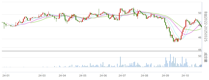 今日(2024年10月29日,周二)中國(guó)繭絲綢交易市場(chǎng)生絲電子指數(shù)下跌0.44%收于4797.68點(diǎn)。B絲2022D(商檢4A級(jí)生絲):241125合約下跌0.21萬(wàn)元報(bào)收于48.15萬(wàn)元;250325合約下跌0.24萬(wàn)元報(bào)收于47.94萬(wàn)元;250925合約下跌0.12萬(wàn)元報(bào)收于47.61萬(wàn)元。