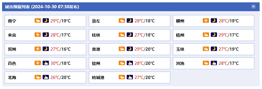 廣西氣象臺(tái)30日05時(shí)發(fā)布預(yù)報(bào):