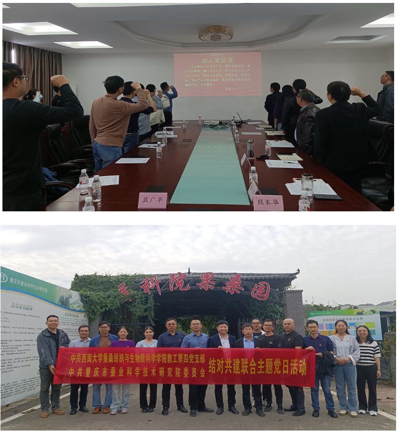 10月25日,重慶市蠶科院黨委(含各支部班子)與西南大學(xué)蠶桑紡織與生物質(zhì)科學(xué)學(xué)院教工第四支部聯(lián)合開展“黨旗引領(lǐng)強(qiáng)科研 創(chuàng)新鑄就新絲路”主題黨日活動。