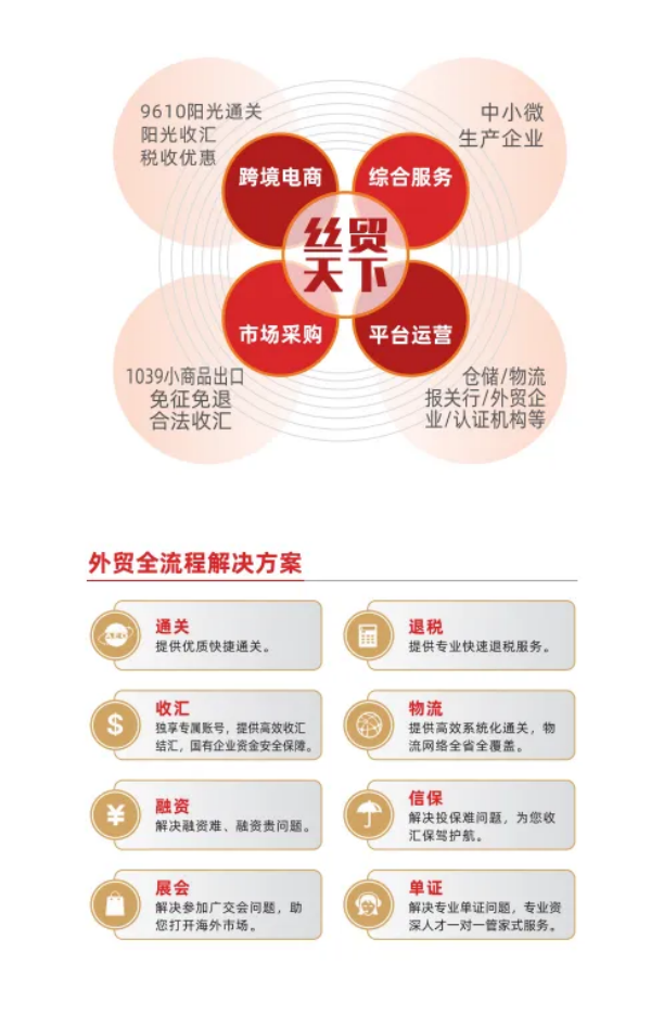 目前,“絲貿(mào)天下外綜服務(wù)平臺”提供的服務(wù)內(nèi)容已涵蓋常規(guī)的出口外綜服務(wù)、市場采購(1039)以及跨境電商(9610)等領(lǐng)域。在今年前三季度中,絲紡集團的外貿(mào)綜合服務(wù)出口額實現(xiàn)同比增長8%,服務(wù)范圍已擴展至廣州、佛山、東莞、深圳、江門、陽江、肇慶等廣東地區(qū)的多數(shù)城市,其外綜出口額在全省名列前茅。