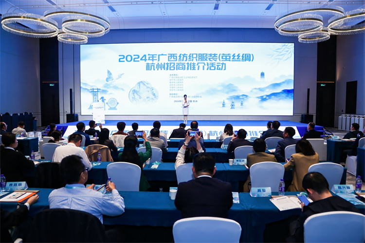 為加強(qiáng)浙江、廣西兩省 (區(qū))紡織服裝 (繭絲綢)產(chǎn)業(yè)的交流與合作,推動(dòng)繭絲綢產(chǎn)業(yè)高質(zhì)量發(fā)展,10月31日,2024 年廣西紡織服裝(繭絲綢)杭州招商推介活動(dòng)在杭州市圓滿舉行。本次活動(dòng)由廣西壯族自治區(qū)工業(yè)和信息化廳、南寧市人民政府、百色市人民政府、河池市人民政府和來(lái)賓市人民政府主辦,由廣西繭絲綢行業(yè)協(xié)會(huì)和浙江省絲綢協(xié)會(huì)協(xié)辦。廣西區(qū)帶著滿滿誠(chéng)意與浙江客商齊聚一堂,敘友誼、商合作、謀發(fā)展。