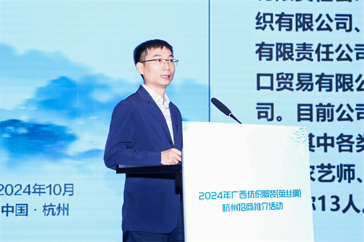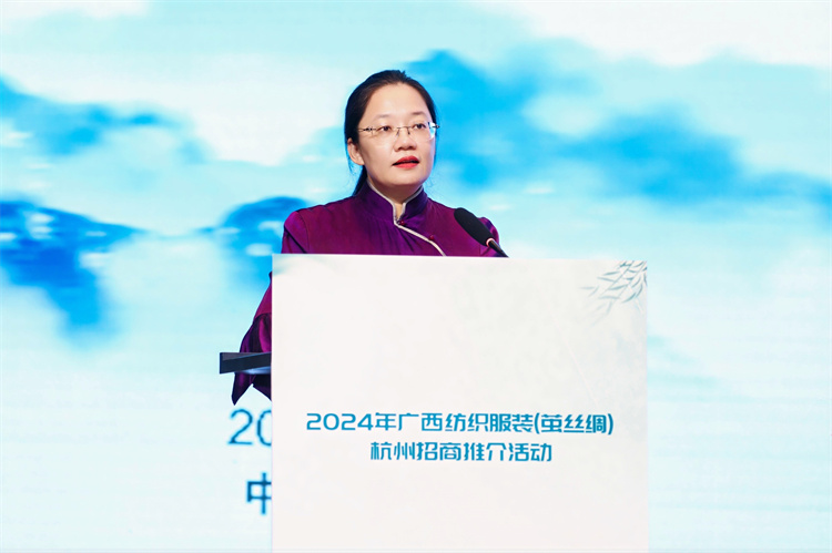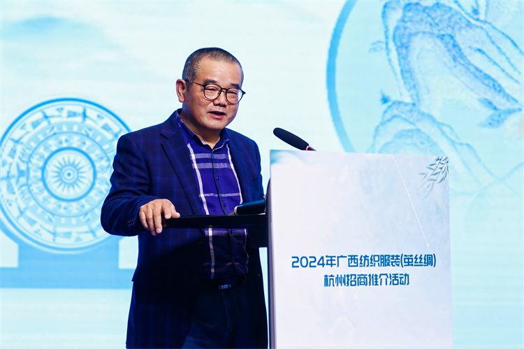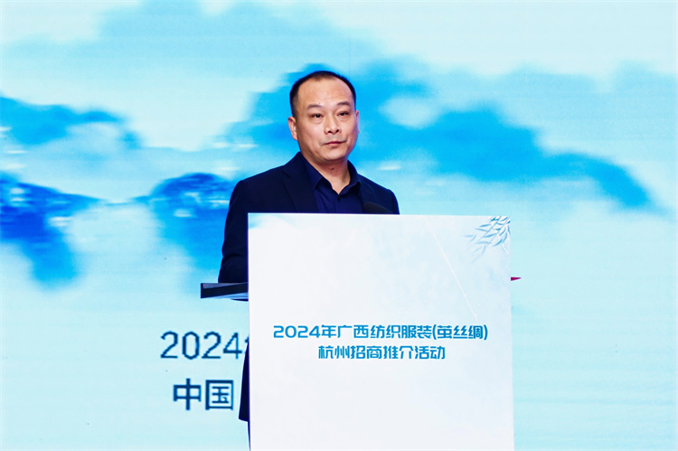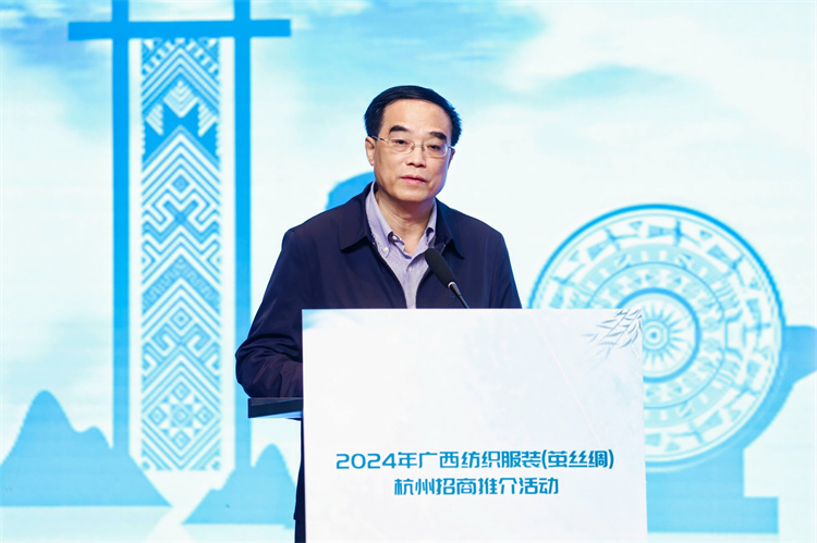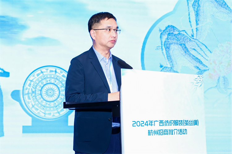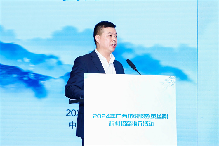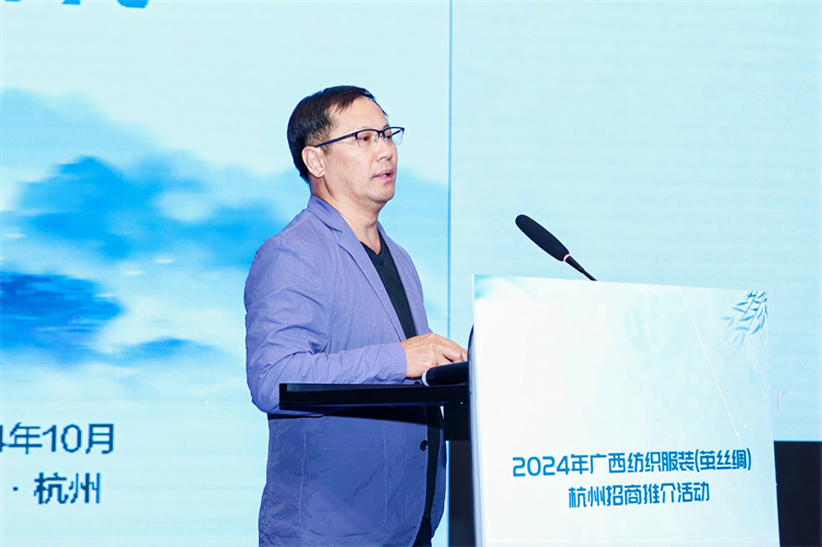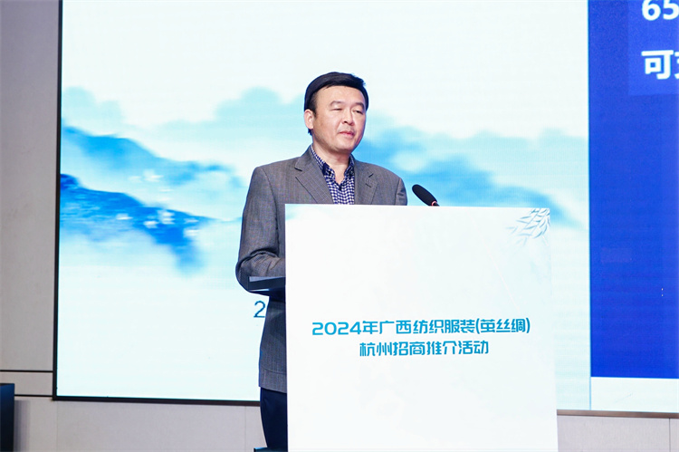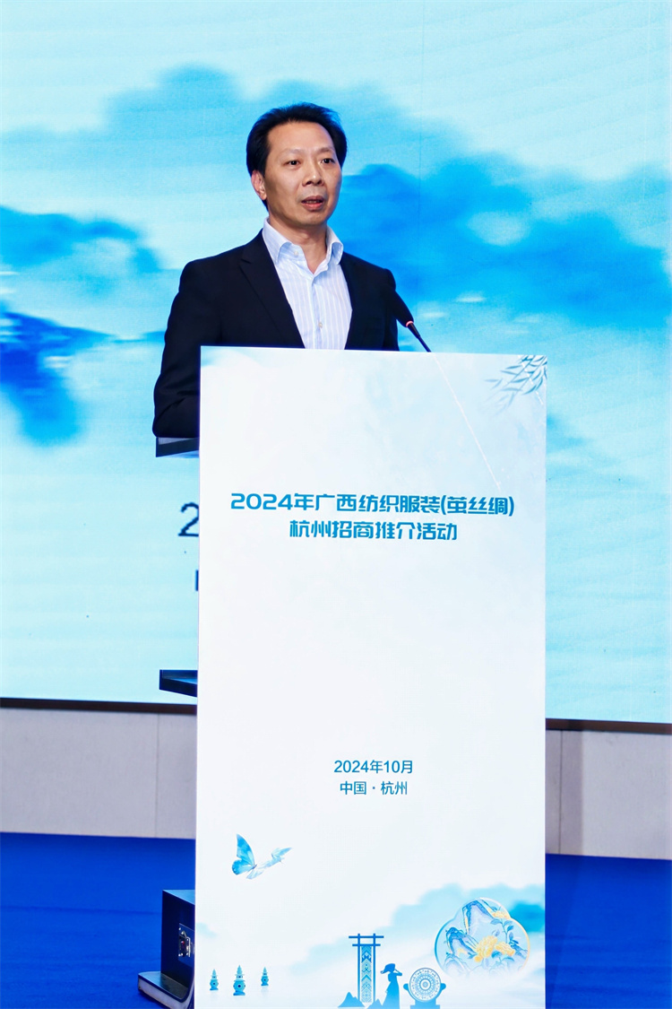 他表示,深化東西部產(chǎn)業(yè)協(xié)作是中央的一項(xiàng)重大經(jīng)濟(jì)決策,更是推動(dòng)浙江廣西兩省區(qū)產(chǎn)業(yè)高質(zhì)量發(fā)展的重大機(jī)遇。近年來(lái),浙江廣西兩省區(qū)深度加強(qiáng)繭絲綢產(chǎn)業(yè)交流與合作,推動(dòng)產(chǎn)業(yè)互補(bǔ)、人員互動(dòng)、技術(shù)互學(xué)、觀念互通,并取得實(shí)際成效,實(shí)施產(chǎn)業(yè)項(xiàng)目超200個(gè),吸納數(shù)萬(wàn)名農(nóng)村勞動(dòng)力就業(yè)。隨著東桑西移與東綢西移戰(zhàn)略實(shí)施,廣西在推進(jìn)產(chǎn)業(yè)的縱向延伸和橫向擴(kuò)展、布局優(yōu)化體系完善產(chǎn)業(yè)化運(yùn)營(yíng)提升等方面持續(xù)加力。在浙江等先進(jìn)省份的大力支持下,廣西繭絲綢產(chǎn)業(yè)取得了高速發(fā)展和成效。今年10月15日,中國(guó)絲綢協(xié)會(huì)、廣西工業(yè)和信息化廳和河池市人民政府聯(lián)合舉辦的2024年全國(guó)絲綢產(chǎn)業(yè)高質(zhì)量發(fā)展現(xiàn)場(chǎng)會(huì)在廣西宜州成功舉辦。時(shí)代發(fā)展新機(jī)遇,共謀繭絲綢產(chǎn)業(yè)發(fā)展的新內(nèi)容。浙江省出臺(tái)了《關(guān)于推進(jìn)絲綢產(chǎn)業(yè)傳承發(fā)展的指導(dǎo)意見(jiàn)》、《關(guān)于促進(jìn)浙江省紡織產(chǎn)業(yè)高質(zhì)量發(fā)展的實(shí)施意見(jiàn)》等政策,同時(shí),科技創(chuàng)新方成果顯著。隨著浙掛合作戰(zhàn)略的進(jìn)一步實(shí)施,對(duì)推動(dòng)浙江廣西繭絲綢產(chǎn)業(yè)合作具有非常重要的意義。今天的推介活動(dòng)是中西部協(xié)作和兩省區(qū)工業(yè)和信息化領(lǐng)域的產(chǎn)業(yè)合作,承接?xùn)|部產(chǎn)業(yè)有序轉(zhuǎn)移廣西的實(shí)際舉措。廣西區(qū)按照習(xí)近平總書記對(duì)廣西重大方略要求,搶抓機(jī)遇、乘勢(shì)而上,具有多重政策疊加優(yōu)勢(shì),出臺(tái)了一系列支持政策文件,形成政策“組合拳”效應(yīng),并確保政策兌現(xiàn)時(shí)效,高度重視繭絲綢的高質(zhì)量發(fā)展,明確提出構(gòu)建現(xiàn)代化產(chǎn)業(yè)體系,改造升級(jí)輕工紡織等傳統(tǒng)產(chǎn)業(yè),依托區(qū)位、交通、人力、政策等各項(xiàng)優(yōu)勢(shì),加持區(qū)位政策資源,推動(dòng)產(chǎn)業(yè)轉(zhuǎn)移承接發(fā)展。他最后表示,廣西作為中國(guó)與東盟國(guó)家往來(lái)的國(guó)際大通道,21世紀(jì)海上絲綢之路與絲綢之路經(jīng)濟(jì)帶的重要節(jié)點(diǎn),選擇廣西就是選擇機(jī)遇,投資廣西就是投資未來(lái)。他期待,愿以此次對(duì)接活動(dòng)為契機(jī),推動(dòng)各界與廣西全方位合作,共享發(fā)展商機(jī)。