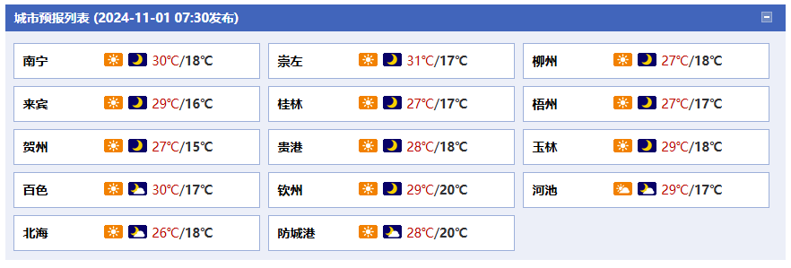 廣西氣象臺11月1日05時發(fā)布預(yù)報: