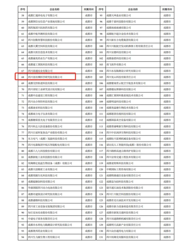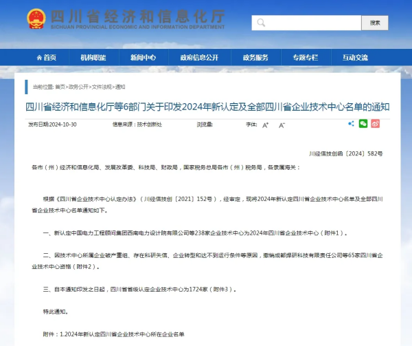 2024年10月30日,四川省經(jīng)濟(jì)和信息化廳、四川省發(fā)展和改革委員會(huì)、四川省科學(xué)技術(shù)廳等六部門聯(lián)合發(fā)布《關(guān)于印發(fā)2024年新認(rèn)定及全部四川省企業(yè)技術(shù)中心名單的通知》(川經(jīng)信技創(chuàng)函〔2024〕582號(hào)),新認(rèn)定238家企業(yè)技術(shù)中心為2024年四川省企業(yè)技術(shù)中心,其中,四川省絲綢科學(xué)研究院有限公司(簡(jiǎn)稱“省絲綢院”)榜上有名。