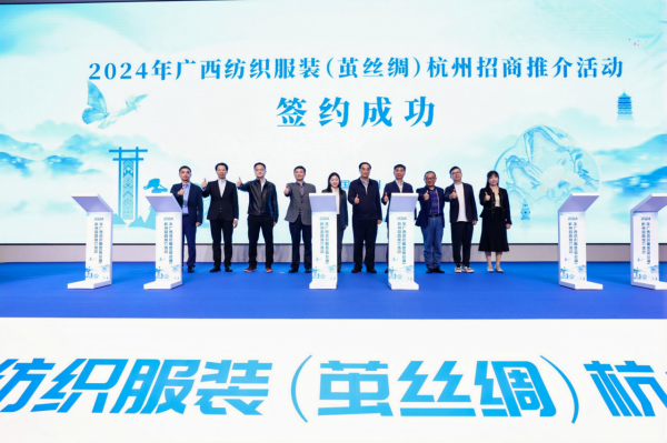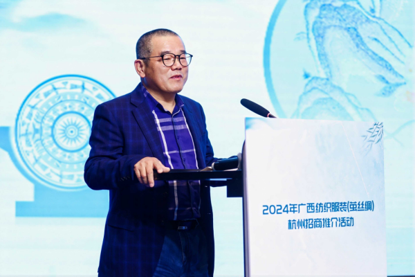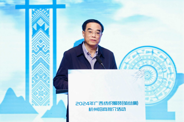 10月31日,由廣西自治區(qū)工業(yè)和信息化廳,南寧、梧州、河池、百色、來賓市人民政府聯(lián)合主辦,廣西繭絲綢行業(yè)協(xié)會(huì)、浙江省絲綢協(xié)會(huì)協(xié)辦的2024年廣西紡織服裝(繭絲綢)產(chǎn)業(yè)招商推介活動(dòng)在杭州順利舉辦。自治區(qū)工業(yè)和信息化廳二級巡視員楊富剛、浙江省絲綢協(xié)會(huì)會(huì)長吳金根為活動(dòng)致辭,河池市政府領(lǐng)導(dǎo)出席會(huì)議,自治區(qū)工業(yè)和信息化廳相關(guān)處室、相關(guān)市工信、投資促進(jìn)部門負(fù)責(zé)人、全區(qū)繭絲綢行業(yè)重點(diǎn)企業(yè),浙江省絲綢協(xié)會(huì)領(lǐng)導(dǎo),浙江萬事利集團(tuán)有限公司、浙江凱喜雅國際股份有限公司、浙江嘉欣絲綢股份有限公司等重點(diǎn)目標(biāo)企業(yè)負(fù)責(zé)人及浙江繭絲綢行業(yè)供應(yīng)鏈重點(diǎn)經(jīng)銷商、貿(mào)易商或客商代表等共計(jì)60多人參加了本次活動(dòng)。
