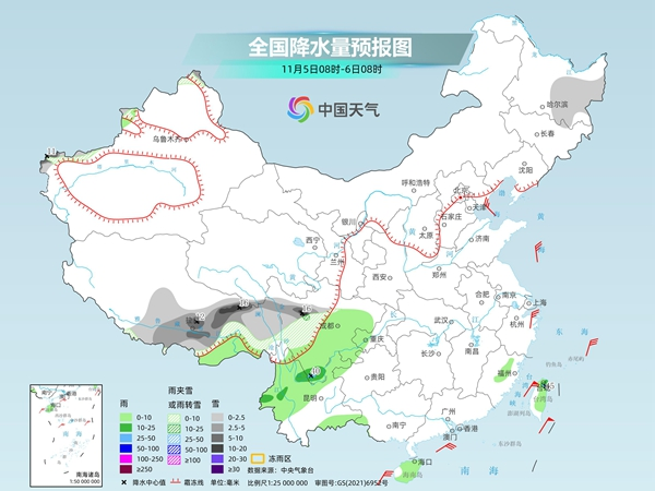 今明兩天(11月5日至6日),全國(guó)大部降水總體不多,雨雪天氣主要出現(xiàn)在西南地區(qū);海南島今明天降雨強(qiáng)度不大,但當(dāng)?shù)厍捌趶?qiáng)降雨頻繁,公眾仍需警惕次生災(zāi)害。眼下,冷空氣對(duì)我國(guó)的影響還將繼續(xù),今天,降溫區(qū)域?qū)⑾蚰贤七M(jìn),主要影響江淮、江南等地,降溫過(guò)后,長(zhǎng)江流域明晨氣溫可能創(chuàng)下今年立秋以來(lái)新低。