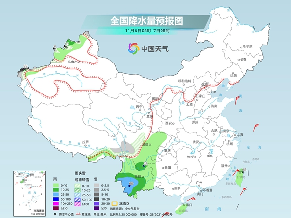 明天,新疆北疆北部和南疆西部山區(qū)、西藏東南部、川西高原等地部分地區(qū)有小到中雪或雨夾雪,其中,新疆北疆北部和南疆西部山區(qū)等地高海拔地區(qū)有大到暴雪,局地大暴雪。云南中南部、四川南部、臺(tái)灣島東北部等地部分地區(qū)有中到大雨,其中,云南西南部等地部分地區(qū)有暴雨。