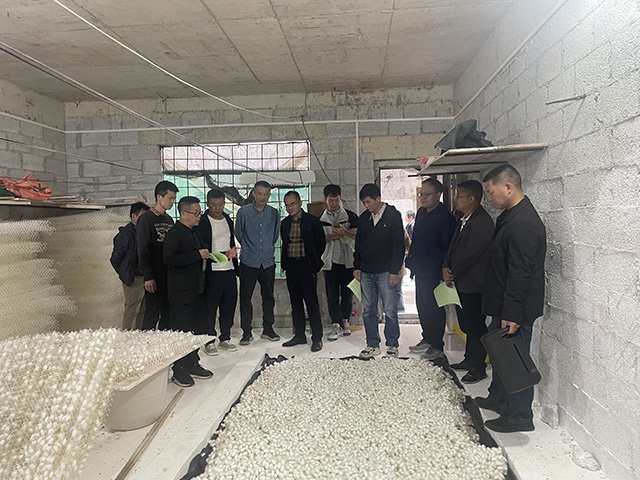 上午,參會(huì)人員到百色市凌云縣沙里鄉(xiāng)弄塘村實(shí)地考察了原蠶基地的桑園、蠶房等基礎(chǔ)設(shè)施情況。下午開展了蠶種生產(chǎn)形勢(shì)分析的會(huì)議交流。在會(huì)上,各蠶種生產(chǎn)單位分別介紹了各自的蠶種生產(chǎn)經(jīng)營及蠶桑生產(chǎn)等相關(guān)情況。隨后,廣西蠶業(yè)技術(shù)推廣站黃紅燕副站長分析了2024年蠶種生產(chǎn)及供需形勢(shì),指出今年蠶種生產(chǎn)供銷形勢(shì)旺盛,蠶種微粒子病檢疫情況良好,在4月底至5月下旬出現(xiàn)過蠶種供應(yīng)偏緊的情況。建議各蠶種生產(chǎn)單位結(jié)合實(shí)際,做好明年上半年的蠶種保供應(yīng)工作。一是做好秋制春用冷藏種的生產(chǎn)入庫;二是做好區(qū)內(nèi)原蠶基地的建設(shè),在蠶種緊缺時(shí)能及時(shí)生產(chǎn)蠶種供應(yīng)區(qū)內(nèi)市場。