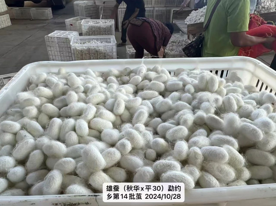 今年9月開始,德宏正信公司在隴川縣首次進(jìn)行大規(guī)模飼養(yǎng)雄蠶,品種為秋華x平30,從首次規(guī)模雄蠶繭的收購來看,蠶繭的質(zhì)量很好,其核心指標(biāo)一一蠶繭的鮮殼量平均達(dá)11.6克,繭價也隨著質(zhì)量提高而上漲。
