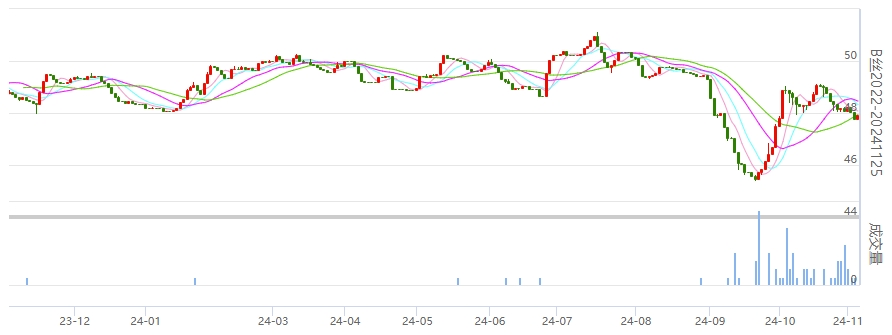 今日(2024年11月06日,周三)中國繭絲綢交易市場生絲電子指數(shù)上漲0.16%收于4760.46點。B絲2022D(商檢4A級生絲):241125合約上漲0.18萬元報收于47.94萬元;250325合約上漲0.12萬元報收于47.58萬元;250925合約上漲0.09萬元報收于47.22萬元。