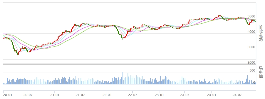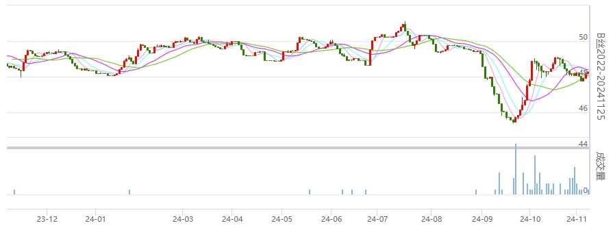 今日(2024年11月08日,周五)中國繭絲綢交易市場生絲電子指數(shù)上漲0.36%收于4790.21點(diǎn),本周生絲指數(shù)下跌0.21%。B絲2022D(商檢4A級生絲):241125合約上漲0.06萬元報(bào)收于48.27萬元;250325合約上漲0.54萬元報(bào)收于48.18萬元;250925合約上漲0.33萬元報(bào)收于47.61萬元。