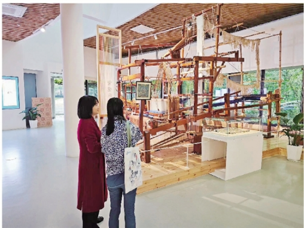 絲博館的“天蠶靈機:中國蠶桑絲織技藝非物質(zhì)文化遺產(chǎn)展”里,幾臺大型的織機模型吸引了記者的注意。