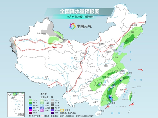 具體來看,中央氣象臺預計,今天新疆北部和南疆西部山區(qū)等地部分地區(qū)有小到中雪或雨夾雪,其中,新疆阿勒泰山區(qū)、塔城北部、伊犁河谷周邊山區(qū)等地部分地區(qū)有大到暴雪,局地大暴雪。東北地區(qū)南部、西北地區(qū)東部、華北、黃淮、江淮北部、江漢大部、江南中南部、西南地區(qū)東部、華南中東部、臺灣島等地部分地區(qū)有小雨,其中,遼寧中北部和西部、河北東北部、北京東部、天津大部、河南中部、重慶中東部、湖北西南部、湖南西北部、廣東中東部沿海等地部分地區(qū)有中雨,局部大雨。