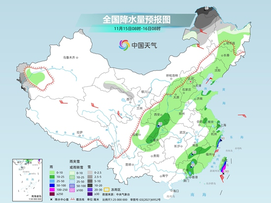 后天開始,中東部地區(qū)還將有新一輪大范圍雨雪天氣過程。預計,后天內蒙古東部、黑龍江北部、新疆南疆西部山區(qū)、甘肅祁連山山區(qū)等地部分地區(qū)有小雪或雨夾雪,其中,內蒙古東北部、黑龍江西北部、新疆南疆西部山區(qū)等地部分地區(qū)有中到大雪,局地暴雪。陜西東南部、四川東部、重慶西部、江西中部、浙江東部、廣東中東部、臺灣島等地部分地區(qū)有中到大雨,其中,浙江東南部、臺灣島東部和南部等地部分地區(qū)有暴雨,臺灣島南部局地有特大暴雨。