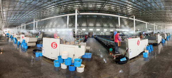 河池市恒業(yè)繭絲有限責(zé)任公司繅絲車(chē)間生產(chǎn)場(chǎng)景